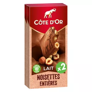 Barra de chocolate ao leite com avelã 2x180g - CÔTE D'OR