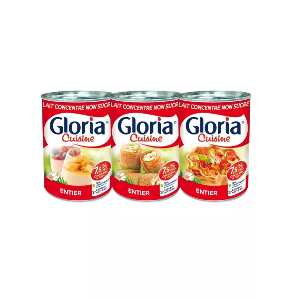 Lait concentré non sucré entier 7,5 M.G 3x410g - GLORIA
