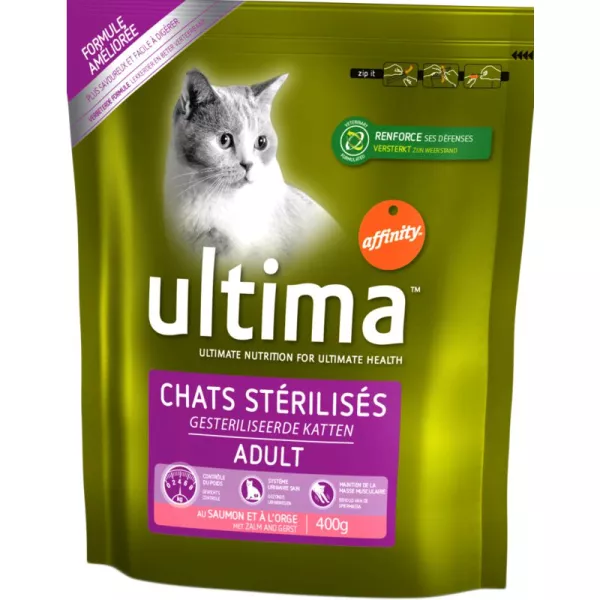 LEVERANCIER VAN Croquettes Stérilisées Pour Chat Au Saumon 400g - ULTIMA GROOTHANDEL