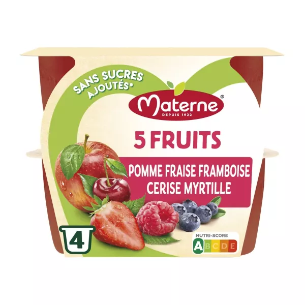 Compotes 5 fruit Apple Framboise Cherry Bilberry zonder suiker toegevoegd 100 g - Materne groothandel