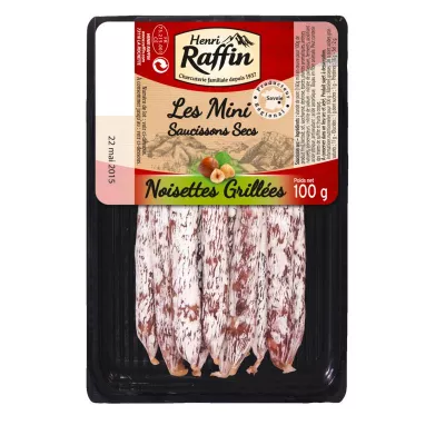 Varkensvlees (160 g gebruikt voor 100 g eindproduct), hazelnoten 5%, lactose, zout, sucrose, dextrose, specerijen, aromatische planten, natuurlijke aroma's, conserveermiddelen: natriumnitriet - kaliumnitraat, fermenten, voedingszuur: citroenzuur, antioxidant : ascorbinezuur. Omhulsel van dierlijke vezels.