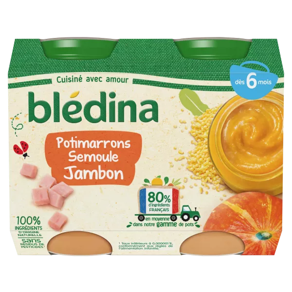 LEVERANCIER VAN Kleine potjes pompoen- en hamgriesmeel 2x200g - BLEDINA GROOTHANDEL
