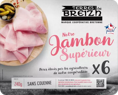varkensham (Bretagne), water, zout, natuurlijke aroma's, glucosestroop, varkensbouillon, dextrose, antioxidant (natriumerythorbaat) conserveermiddel (natriumnitriet).