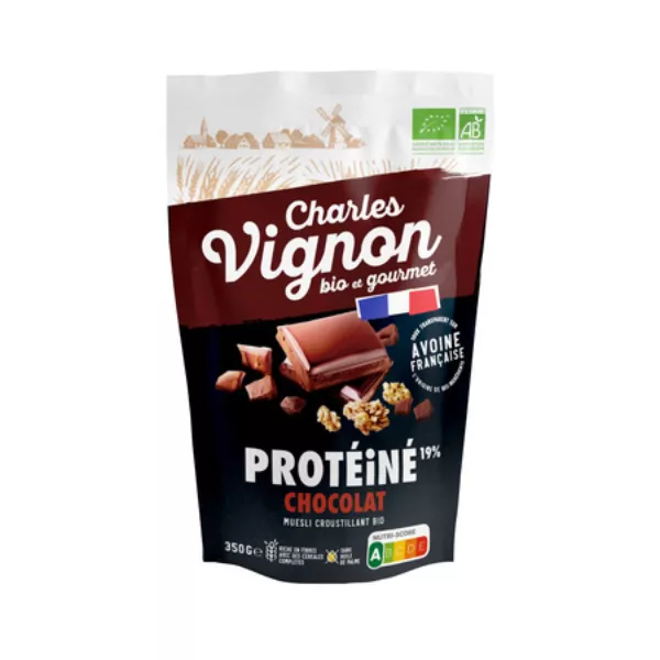 Céréales* 57,1% (pétales de blé, flocons d'avoine* complets 11.3%, flocons de blé* complets, gluten de blé, riz complet, farine de ble riz", mais"), sucre de canne non raffine, concentré de proteine d'avoine 1% flocons de soja* 5,6%, huile de tournesol*, chocolat noir 4,3% (pâte de cacao" sucre de canne*, beurre de cacao), cacao en poudre, sarrasin, caramel (sucre de canne eau), sel de mer, gousses de vanille de Madagascar broyées Ingrédients issus de l'agriculture biologique. Souligne: ingredients issus du commerce équitable. Peut contenir des traces de lait, graines de sésame et fruits à coque.
