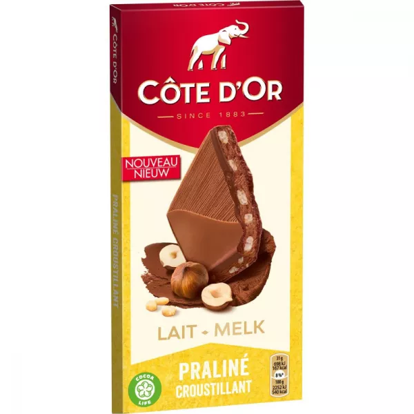 Tablette de chocolat fin Lait praliné croustillant 155g - COTE D'OR