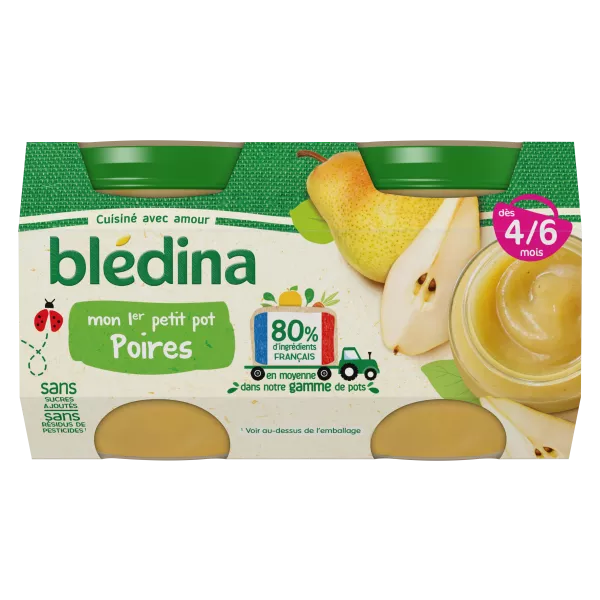 Hũ nhỏ đựng quả lê cho bé từ 4-6 tháng 2x130g - BLEDINA