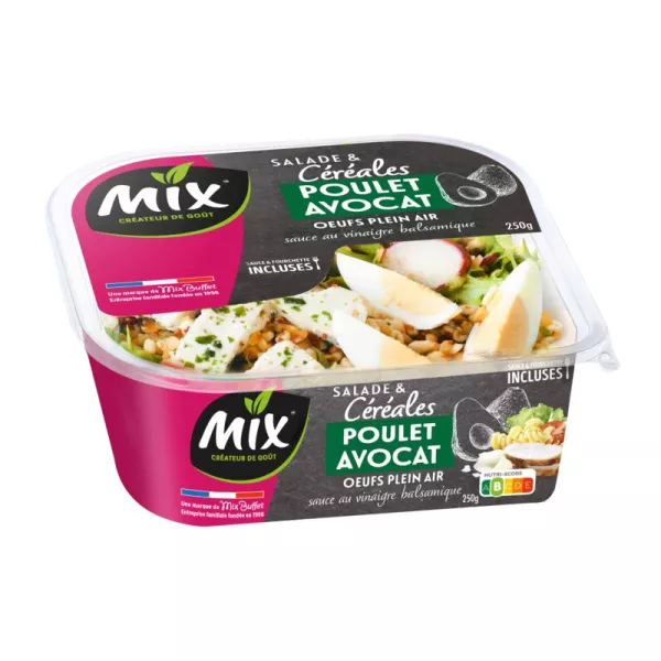 Voir tous les produits de la marque %param%107.5 gのシリアルと調理済みレンズ豆(43%):調理済みデュラム小麦 28.3%(水、デュラム小麦)、調理済みサンゴレンズ豆 6.8%(赤レンズ豆、水)、調理済みスペルト小麦 3.4%(水、スペルト小麦)、半マリネ乾燥トマト(トマト、ひまわり油、塩、香味植物)、コショウ、菜種油。 風味原材料 67.5g(27%):塩ロースト処理鶏ささみスライス 9%(鶏ささみ 8.8%(原産地:フランス)ブドウ糖、キャッサバ澱粉、食塩)、屋外飼育鶏卵 9%、ゆで卵 9%、アボカド8%、パセリ、菜種油。 ミックスサラダ 50 g (20%): レタス、チコリ、ルッコラ。 バルサミコ酢ソース(10%)25g:菜種油、2.3%バルサミコ酢(ワインビネガー、グレープマスト)、エキストラバージンオリーブオイル、塩、ディジョンマスタード(水、マスタードシード、スピリッツビネガー、塩)、塩、黒胡椒。 ミルクとナッツの痕跡がある可能性があります。