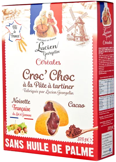 Voir tous les produits de la marque %param%シリアル (53%*) (米セモリナ、全粒小麦セモリナ、オートミールフレーク、小麦粉)、ロット エ ガロンヌ社のヘーゼルナッツとココア スプレッド (40%*) (砂糖、ロット エ ガロンヌ社のヘーゼル ナッツ (6.4%*)、粉ミルク、ココナッツオイル、ココアパウダー*菜種油、乳化剤:ヒマワリレシチン、香料:バニラ]、砂糖、着色料:E160a、塩、乳化剤:脂肪酸のモノグリセリドおよびジグリセリド(菜種)、ビタミン(ナイアシン(B3またはPP) )、B6、リボフラビン (B2)、チアミン (B1)、葉酸 (B9)、B12)、鉄。完成品中の *%。