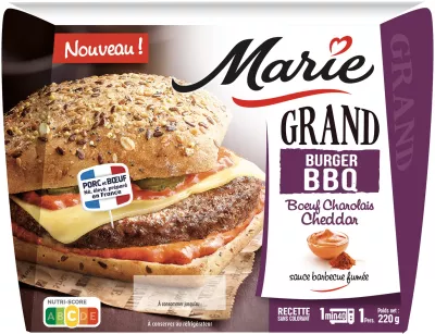 Voir tous les produits de la marque %param%特製パン 50% (小麦粉 25%、水、ライ麦粉 1%、イースト、塩、ひまわり油、小麦グルテン、小麦ふすま、小麦麦芽粉 0.2%。装飾: オーツ麦フレーク、褐色亜麻仁、黄色亜麻仁、ヒマワリの種、キビの種、ケシの実)、フランス産純粋シャロレー牛ミンチステーキ 27.2%、スモークパプリカ入りバーベキューソース 11.3%[マヨネーズ[菜種油、水、マスタード(水、マスタードシード、酢、塩)]、卵黄、酢、砂糖、食塩、濃縮レモン果汁]、プルーンピューレ(プルーン、水)、はちみつ、ビネガーシェリー、スモークパプリカ0.7%、ダブルトマト濃縮物、小麦粉、黒胡椒]、ホワイトチェダー9%、酢漬け2.2 %(ピクルス、水、アルコール酢、食塩、引き締め剤:E 509、保存料:メタ重亜硫酸カリウム)