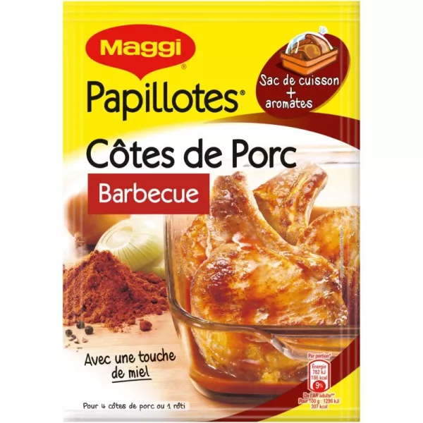 Для 800 г свиных отбивных: Поместите мясо в пакет, посыпьте приправами и добавьте воду: 800 г свиных отбивных + 3 столовые ложки воды. Закройте пакет зажимом, аккуратно перемешайте и поместите его в подходящую посуду. Выпекать на решетке в предварительно разогретой духовке: Нижняя часть традиционной духовки 180°C: 25 мин; Средняя газовая духовка 160°C: 25 мин. Откройте пакет, опасаясь пара, выньте мясо. Перемешать, готово! Не нужно солить.