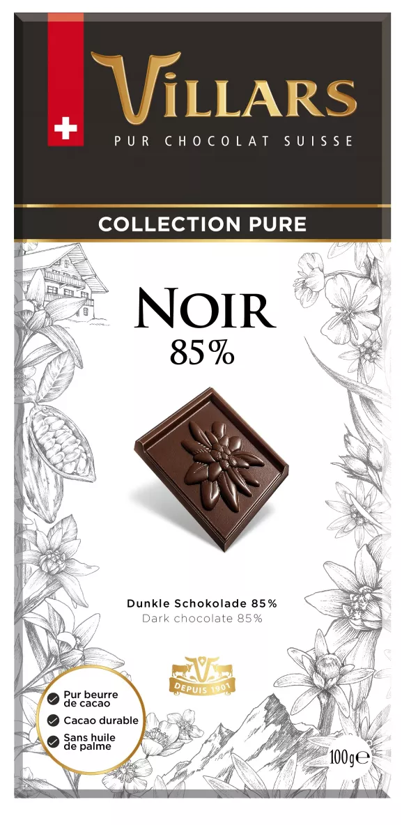 pâte de cacao, sucre*, beurre de cacao, pouc de cacao, émulsifiant (lécithine de soja), arôme naturel de vanille, *ingrédient of suisse origin, cacc 85 % minimum, peut contenir des traces de lait, noisette, amande, noix, noix de pécan, noix cajou, pistache, euf, blé et orge, d-dunkle schokolade 85% kakao zutaten: kakaoma zucker*, kakaobutter, kakaopulver, emulgator (sojalecithin), natürliches vanille aroma, *zuta der schweiz, kakao: 85% mindestens, kann spuren von milch, haselnüssen, mandeln, walnüs pekannüssen, cashewnüssen, pistazien, eiern, weizen und gerste enthalten,i-dark chocolate 85% cocoa ingredients: cocoa paste, sugar*, cocoa butter, emulsifying c powder (soy lecithin), natural vanilla flavor, *ingredient of swiss origin, minimum 85%, may contain traces of milk , nocciole, mandorle, noci, noci pecan, ana pistacchi, uova, frumento e orzo,ua-гіркий чорний шоколад інгредієнти: какао цукор*, какао-масло, какао-порошок, емульгатор (соєвий лецитин), натуральний аромат ванілі, ,quot,країна походження інгредієнтів: швейцарія, загальний вміст в шоколаді сухого з какао: не меньше 85%, може містити сліди молока, фундука, мигдалю, волоських оріxів пекан, горіхів кеш'ю, фісташок, яєць, пшениці та ячменю, rus/by - го околад 85% состав: какао тертое, сахар,quot, масло какао, какао-порошок, эмульгатор цитин, натуральный ароматизатор ваниль, *страна происхождения ингредиентов: ше цее содержание в шоколаде: сухого остатка какао— не менее 85%, грансизомеров ненас ных кислот - оr/100г, продукт может содержать незначительные следы присутствия дука, миндаля, грецких орехов, орехов пекан, кешью, фисташек, яиц, г меня, server au frais et au sec / kühl und trocken lagern / conservare in luogo fresco e asciutto колодному та темному місці / хранить в сухом прохладном месте при температуре 10°с до 20°с, не подвергать воздействию прямых солнелнепрямямых солненых лучей tions nutritionnelles / nährwertangaben / nutritional information / ацінність / пищевая ценность 100г и 10г продукта ergje / energjia /kaлорійність / калорийность энергетическая ценность (ккал/кдж) (