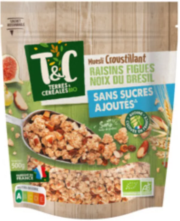 Хрустящие мюсли с виноградом, инжиром и бразильским орехом без добавления сахара, 500г, ЗЕМЛЯ И ЗЛАКИ