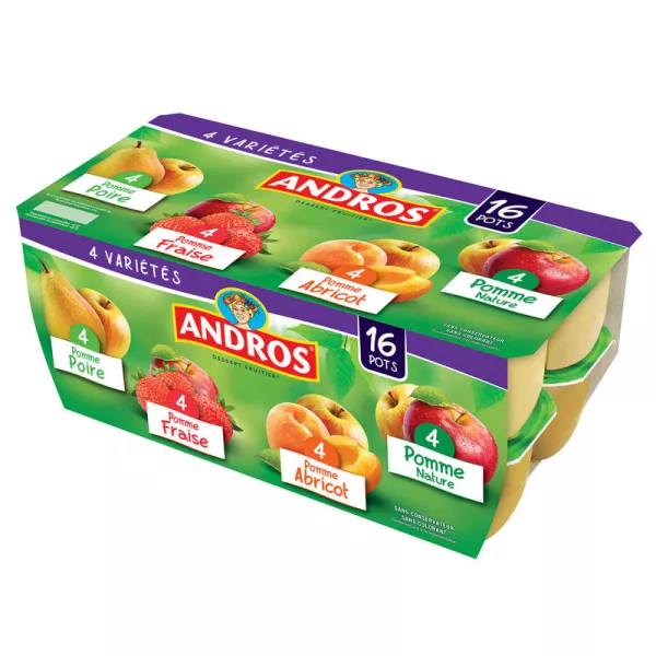 उत्पाद सामग्री : Pomme/poire, pomme/fraise, pomme/abricot, pomme nature (Colis de 3)