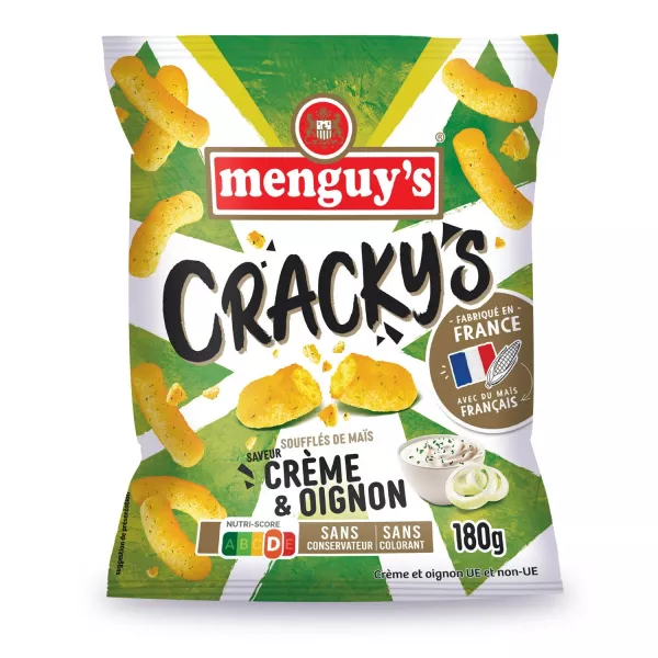 क्रैकी ऐपेरिटिफ़ बिस्कुट कॉर्न सूफ़ल क्रीम प्याज 180 ग्राम - Menguy's