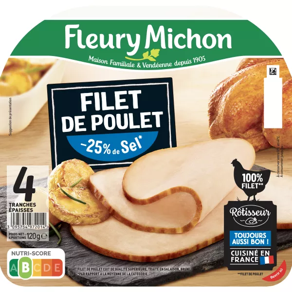चिकन फ़िलेट, 4 स्लाइस 120 ग्राम - फ़्ल्यूरी मिचोन से बड़े पैमाने पर आपूर्तिकर्ता