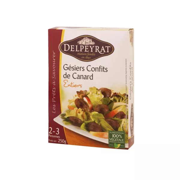 दक्षिण पश्चिम बत्तख गिजार्ड 90%, बत्तख की चर्बी, नमक, काली मिर्च।