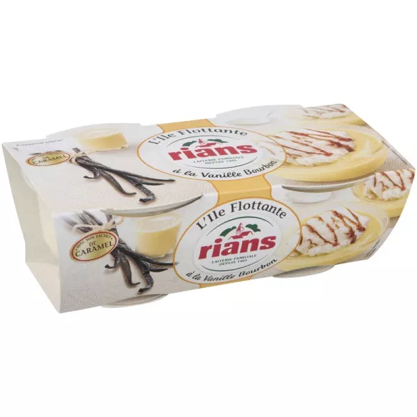 इले फ्लोटेंटे 95 ग्राम: कस्टर्ड (81 ग्राम): स्किम्ड दूध, चीनी, क्रीम, अंडे की जर्दी *(8.4%), कसावा स्टार्च, प्राकृतिक बोरबॉन वेनिला स्वाद (0.8%), वेनिला बीज समाप्त। फेंटा हुआ अंडे का सफेद भाग (14 ग्राम): अंडे का सफेद भाग (84%), चीनी। 5 ग्राम फिलिंग: कारमेल (चीनी, ग्लूकोज-फ्रुक्टोज सिरप, पानी)। *उत्पत्ति: फ़्रांस. एलर्जी को बोल्ड में दिखाया गया है।