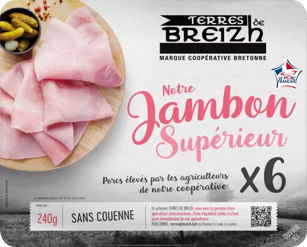 पका हुआ हैम, 6 स्लाइस 240 ग्राम - टेरे डे ब्रीज़ से बड़े पैमाने पर आपूर्तिकर्ता