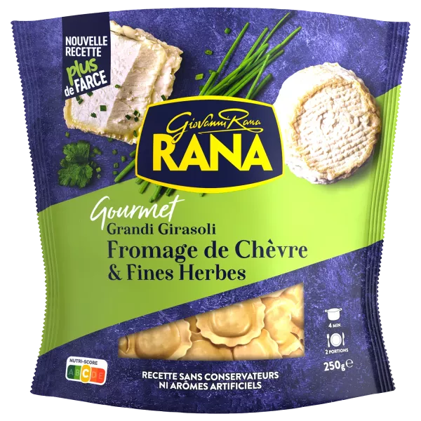 स्टफिंग 63%: रिकोटा (दूध सीरम, दूध, नमक), बकरी पनीर 9%, सूरजमुखी तेल, वनस्पति फाइबर (मकई और आलू), क्रीम (दूध शामिल है), मोत्ज़ारेला पनीर, ब्रेडक्रंब (गेहूं का आटा नरम, पानी, नमक, खमीर) ), स्टार्च, मस्कारपोन चीज़, मट्ठा पाउडर, कसा हुआ पनीर, लहसुन, अजमोद 1%, चाइव्स 0.7%, काली मिर्च, लहसुन पाउडर, नमक, प्राकृतिक स्वाद (जौ और दूध शामिल हैं)। आटा 37%: नरम गेहूं का आटा, अंडे 30%, ड्यूरम गेहूं सूजी।