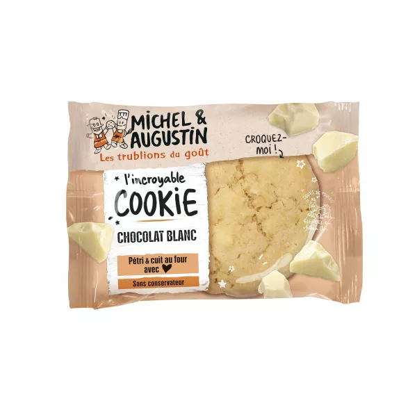 सफेद चॉकलेट के बड़े टुकड़े 28% (चीनी, संपूर्ण दूध पाउडर 25.5%, कोकोआ मक्खन 23.5%, इमल्सीफायर: सोया लेसिथिन, प्राकृतिक वेनिला स्वाद), 2 बड़े चम्मच गेहूं का आटा, 1 गांठ ताजा मक्खन, 1 बड़ा चम्मच गन्ना चीनी, 1 अंडे की एक बूंद, 1 चुटकी आवश्यक बेकिंग पाउडर (डिसोडियम डाइफॉस्फेट, सोडियम कार्बोनेट), 1 चुटकी गेहूं का स्टार्च और नमक।